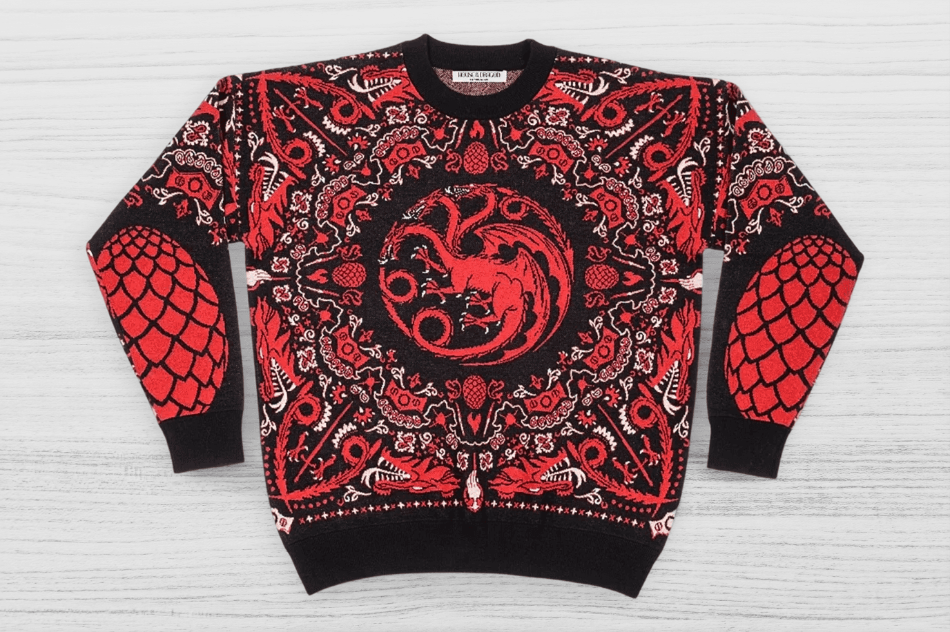 For the “The House of the Dragon” sweater shown above, I deliberately moved away from the stereotypical “cheesy” Christmas sweater aesthetic. Instead, it draws inspiration from traditional Norwegian Dale sweaters, creating a more elevated look that pays homage to the Nordic influences woven throughout the Game of Thrones universe.